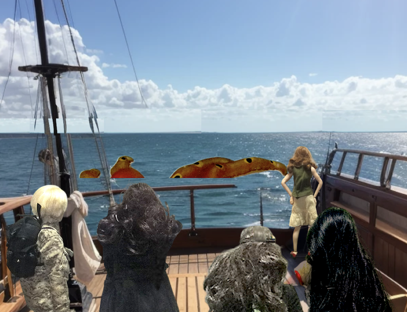 シノは船首で水平線を見ている。