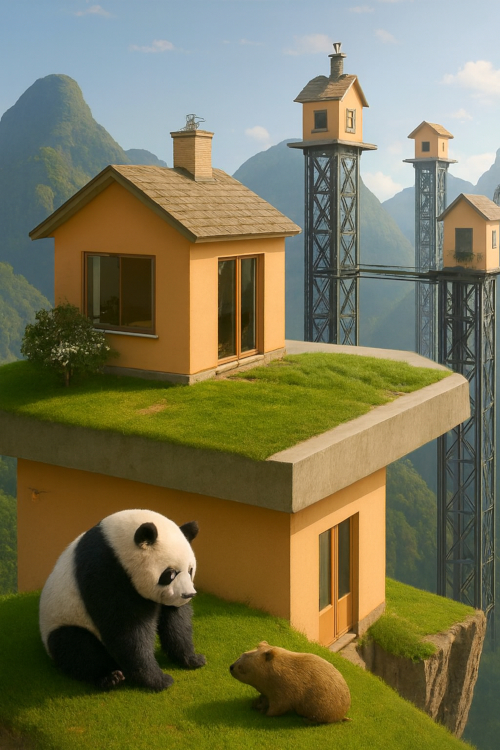 背景を高山地方にしてみた 未来都市ふうに、立体的に建物を配置してみたいのだが、今日は背景を高山の多い地方にしてみた。 これだと住宅内部に階段があって、普通の二階家の落ち着きが出る。 上は今日アップロードした朗読ファイル。
