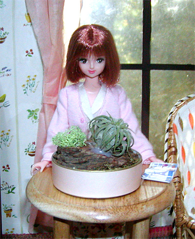 エアープランツなるものを園芸店で求めた。人形たちのリヴリーの島にちょうどいい大きさだ(^^)。エアープランツは、米国南部から南米にかけて広く分布している「アナナス科チランジア属」の植物のことで、樹木や岩場などに着生して空気中の水分を葉から吸収して生きている、という。大きいものは確か新宿御苑の温室でも見かけたことがある。たまに霧吹きで水をかけたり、月に一度くらいソーキング(一晩水にひたす)すればいいと、解説サイトにある。