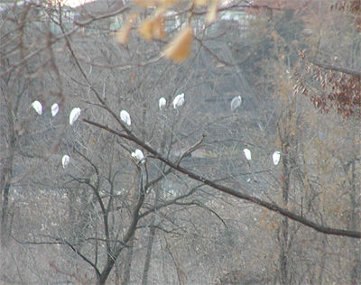 さらに対岸に目をうつしたら、ハンカチの木、じゃなかった。シラサギの木が。。
