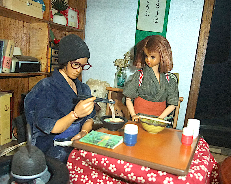 年越しそばをたべている。