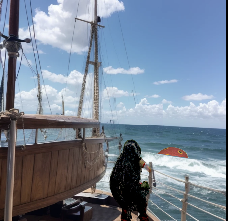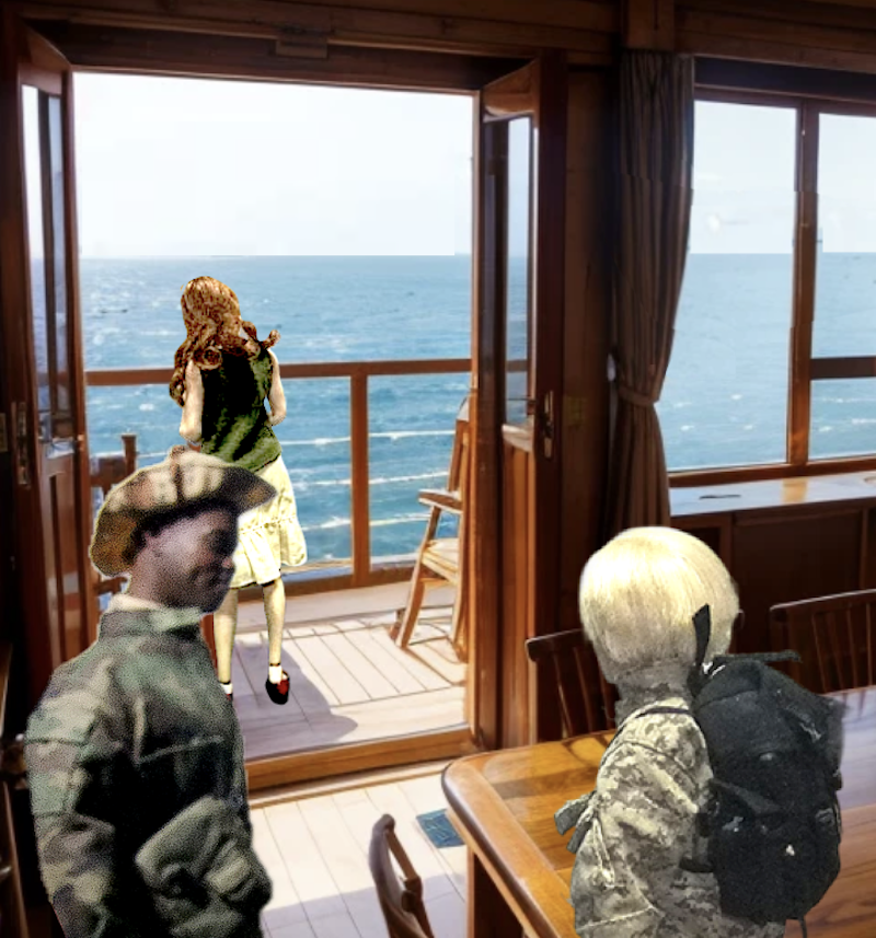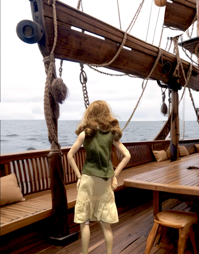 サラは海景を眺めている。