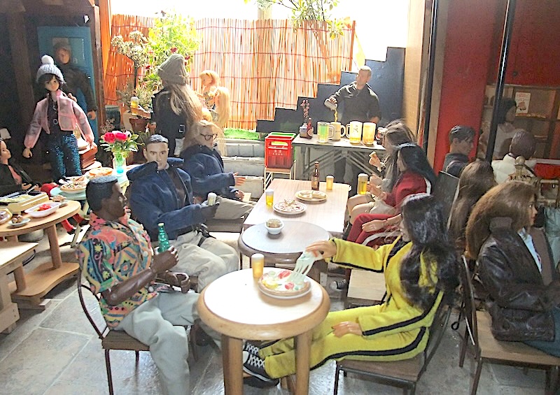 広場に設けられたテーブル席には、