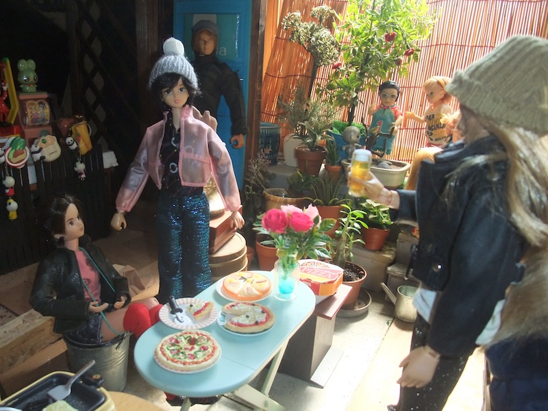 佳奈と舞がさっそくピザを食べている。
