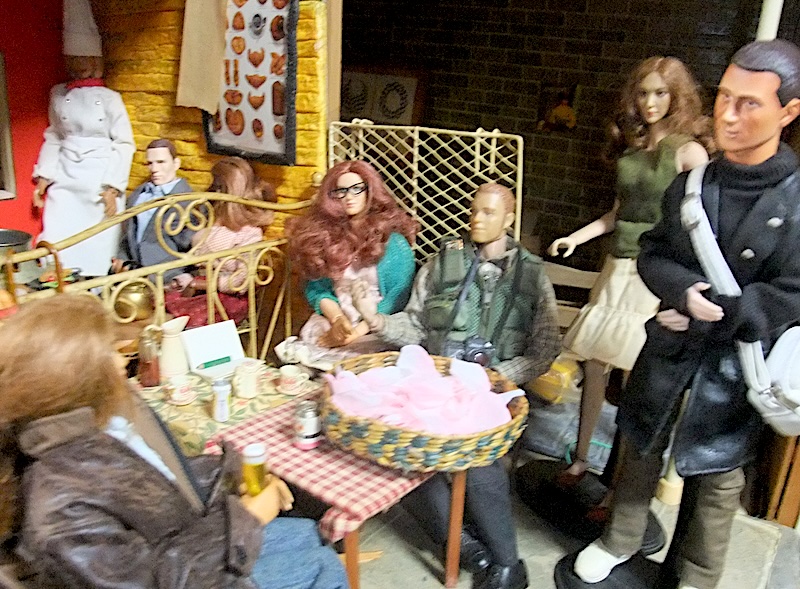 馬のフィギアを並べて話し込んでいる。