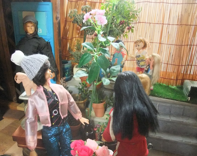 リタが造花の桜の樹木を