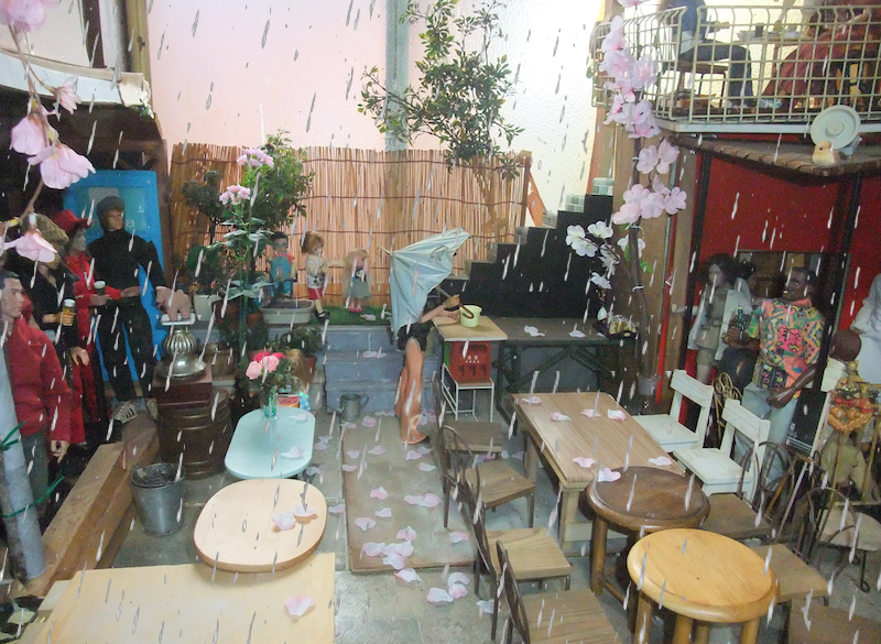 マンゴー亭で雨宿りしている。