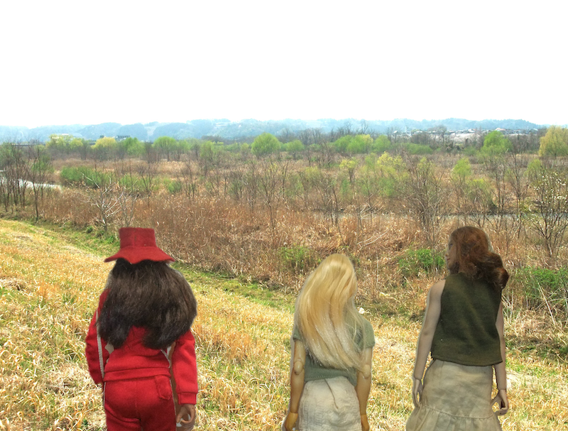 3人は堤防の斜面で