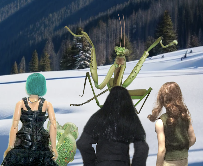 カマキリはサラたちに気がついて